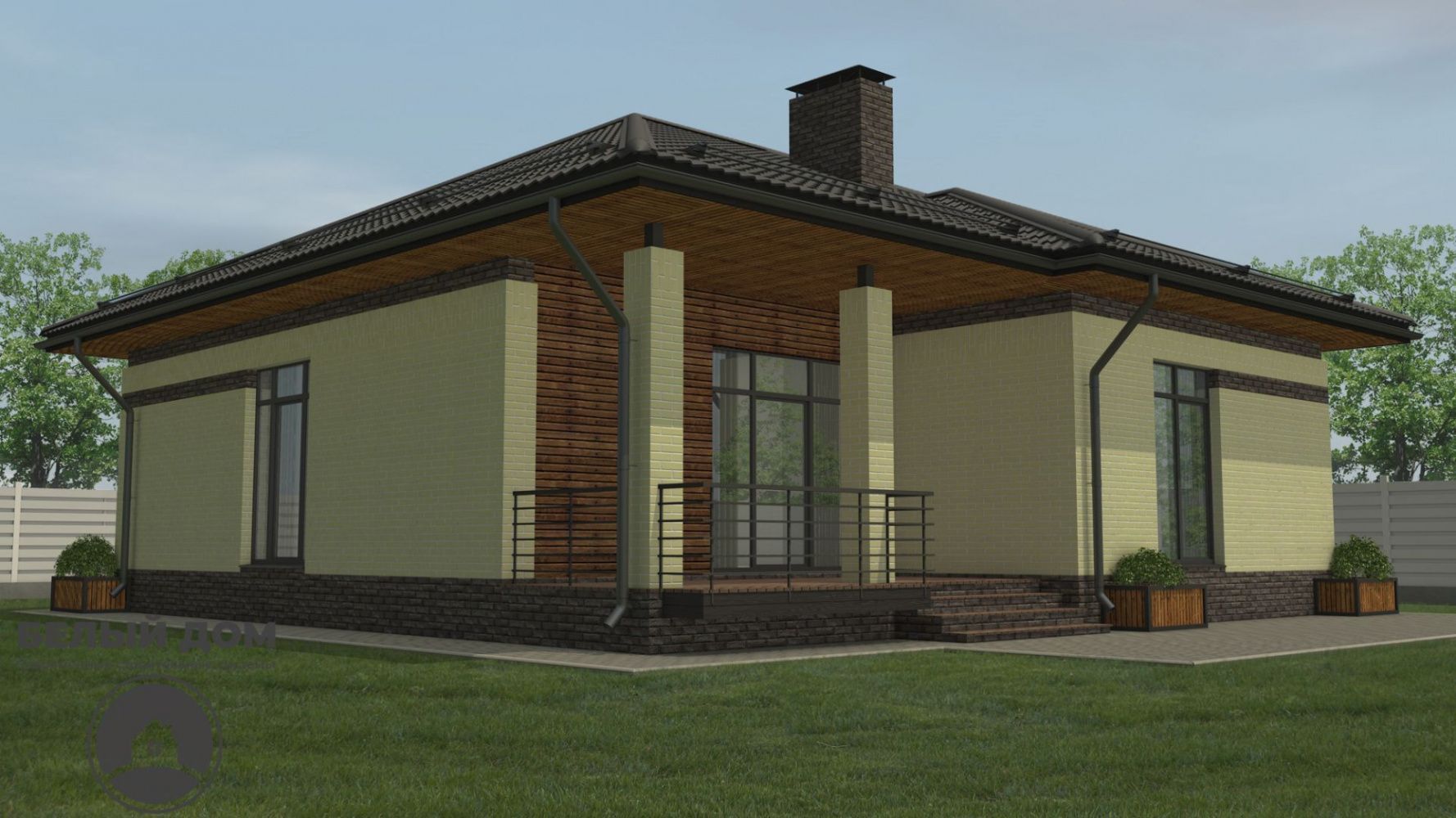 • Над окнами применена система подвесов кирпича BAUT Кровля - металлочерепица Kvinta, производитель - Grand Line, покрытие Velur RAL 7024