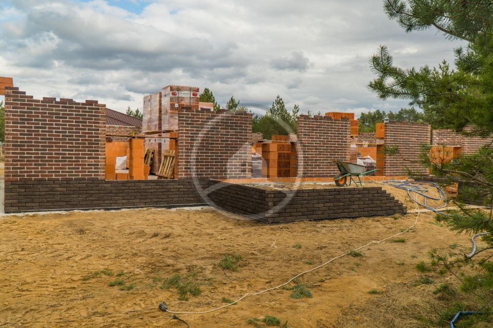 • Цоколь и вставки под окнами кирпич ручной формовки Донские Зори Бронницкий, цветная смесь черная Perel